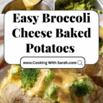 Delicious broccoli cheese baked potatoes featuring perfectly baked russet potatoes topped with a creamy, flavorful broccoli cheese sauce made from fresh broccoli, sharp cheddar, and a hint of hot sauce for a comforting and satisfying meal.
