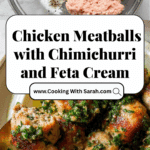 Delicious and savory Chimichurri Chicken Meatballs served with a creamy feta sauce, perfect as an appetizer or main dish. These gluten-free meatballs feature ground chicken mixed with flavorful spices, baked to perfection and topped with fresh, herbaceous chimichurri and smooth feta cream for a Mediterranean-inspired delight.