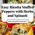 These Herby Ricotta Stuffed Peppers are a delicious and nutritious vegetarian dish combining tender bell peppers filled with a flavorful mixture of ricotta, spinach, fresh herbs, and cheeses. Baked to perfection with a golden breadcrumb topping, they make a comforting and elegant meal perfect for any occasion.