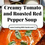 This creamy Tomato and Roasted Red Pepper Soup is a flavorful and comforting dish, perfect for any season. Made with simple ingredients like crushed tomatoes, roasted red peppers, and aromatic onions and garlic, it’s blended to a smooth texture and enriched with heavy cream and Parmesan cheese. This gluten-free American classic can be customized with optional herbs and spices, making it a versatile and delicious recipe for lunch or dinner.